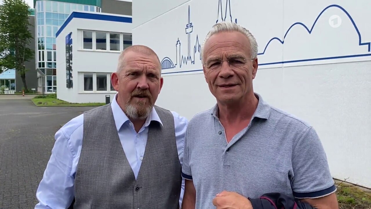 Die Hauptkommissare Max Ballauf und Freddy Schenk werden zu einem Kanal am Stadtrand gerufen. Behrendt und Schenk Dietmar Bär im. Natalie Förster legt ihre Schutzkleidung an im Hintergrund.